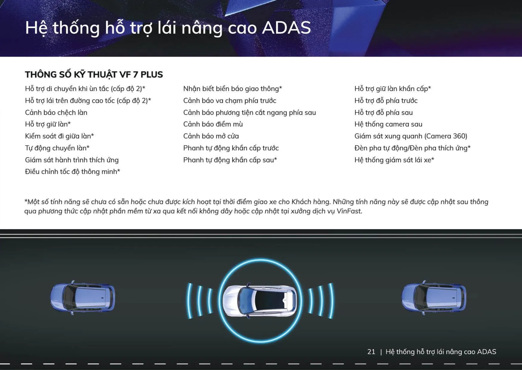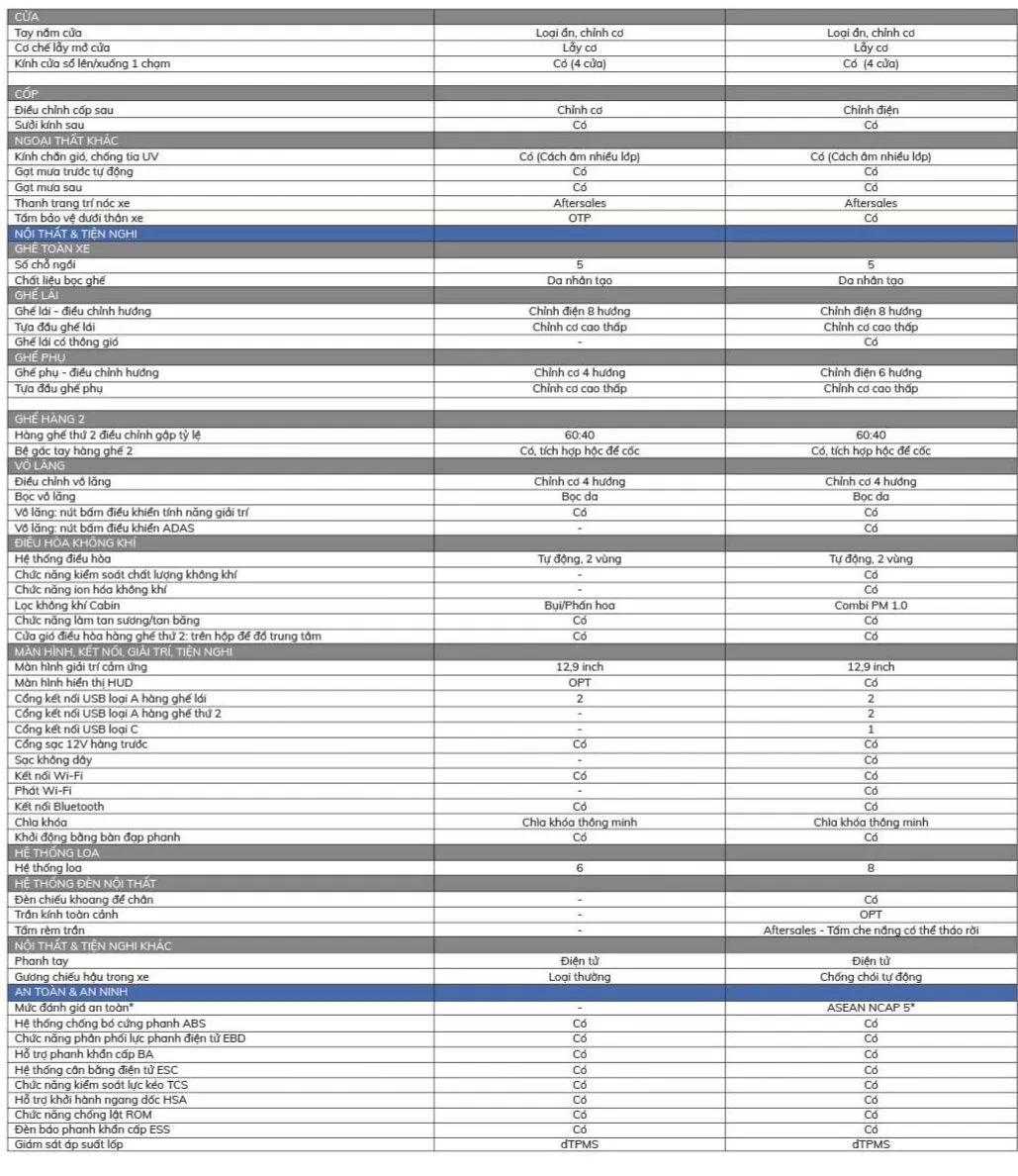 Tính năng ADAS: Giám sát hành trình thích ứng; cảnh báo chệch làn, cảnh báo va chạm phía trước; cảnh báo phương tiện cắt ngang phía sau, cảnh báo điểm mù, hệ thông camera 360 độ…