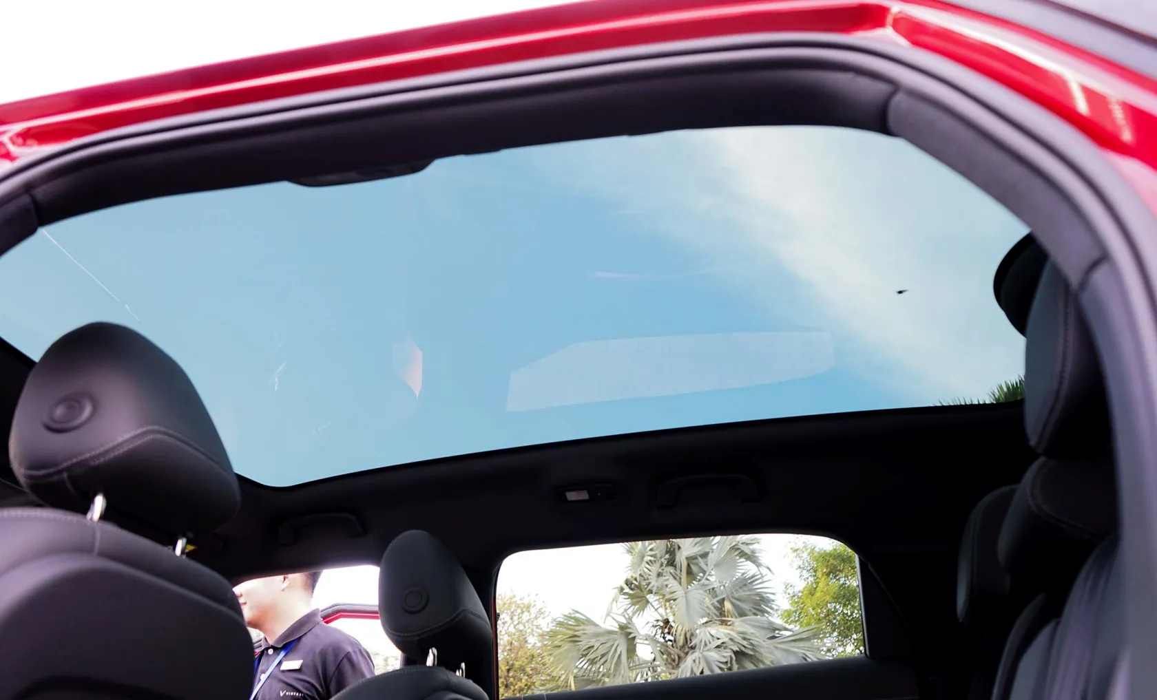 VinFast VF 7 có cấu hình 2 hàng ghế, 5 chỗ ngồi. Các ghế trên xe bọc da êm ái, phối 2 tông màu thể thao, sang trọng. Xe cũng được trang bị cửa sổ trời kích thước lớn trên bản Plus, giúp không gian bên trong thêm phần mở rộng và thoáng đãng.