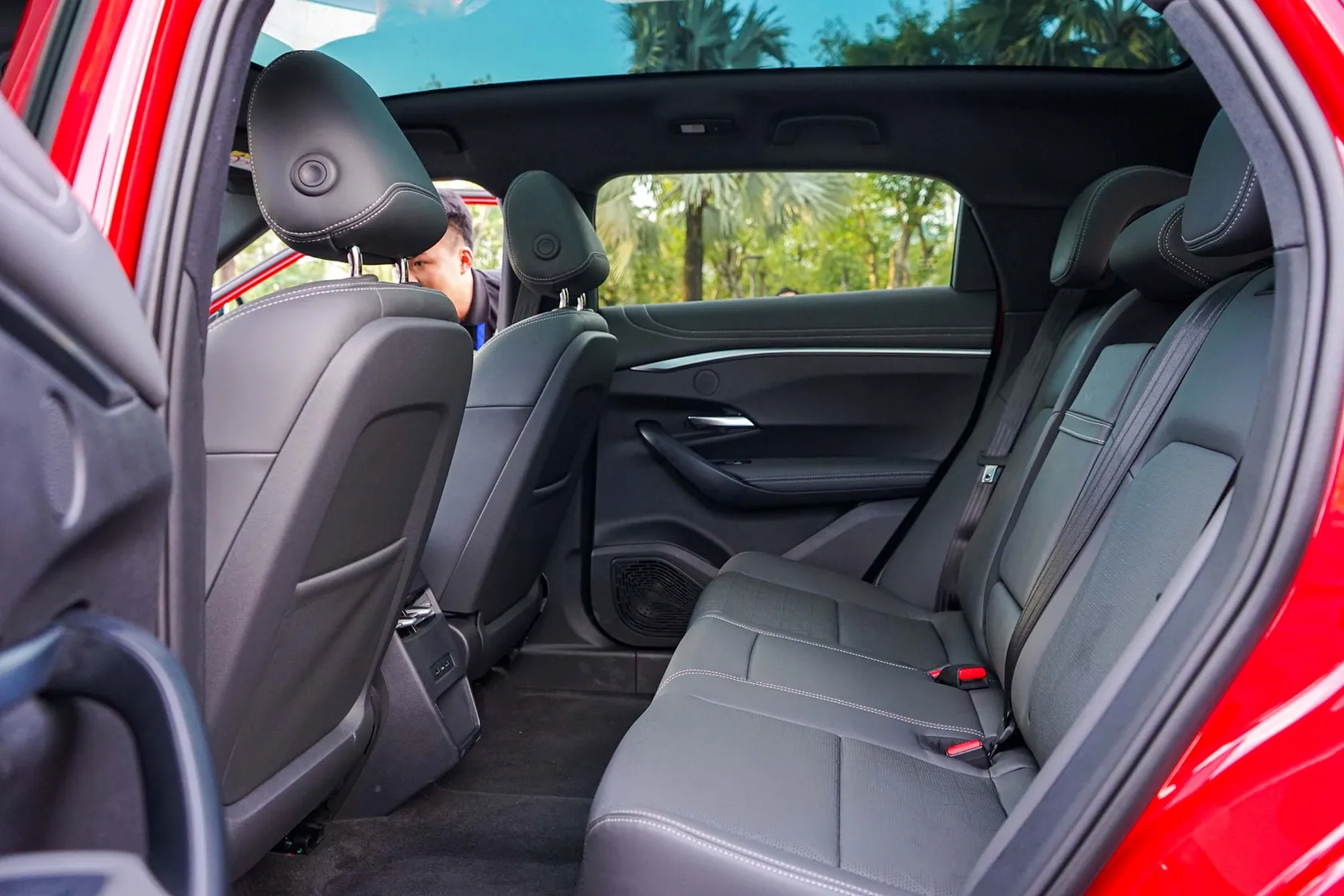 Nóc xe thiết kế thoải dần về phía sau dễ khiến người nhìn liên tưởng đến mẫu xe SUV lai Coupe sành điệu. Cổng sạc điện đặt kín đáo ngay phía dưới khu vực cột A.